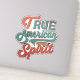 A sticker design embodying the *True American Spirit* could feature a bold, stylised American flag, with a majestic bald eagle soaring above it, symbolising freedom and strength. Incorporating elements like the Statue of Liberty, stars, and stripes in a modern, vibrant palette of red, white, and blue can amplify its patriotic vibe. The slogan "True American Spirit" in classic typography might be placed beneath the imagery, adding a sense of pride and unity. The design should evoke a feeling of heritage, resilience, and the enduring spirit of the nation.