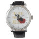 A wristwatch for true crime podcast lovers everywhere, featuring a body in blood silhouette with "true crime podcast junkie" gold text overlay