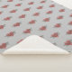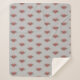 Sherpa blanket for true crime podcast lovers everywhere, featuring a pattern of red fingerprint hearts with typewriter style text.
