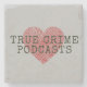 A stone drink coaster for true crime podcast lovers everywhere, featuring a red fingerprint heart with typewriter style text.