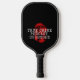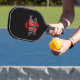 Pickleball paddle for those that also love true crime podcasts! Black background with a bloody fingerprint and typewriter style "True Crime Podcast Obsessed" text.