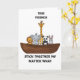 True Friends-A group of animals standing closely together on a brown boat. They represent friendships. The title states: True Friends-One the bottom of the card-Stick Together No Matter What. Inside card: Can be personalized with the name of the person you feel this way about. On the bottom of the card is the sentiment-Love (what ever the sender's name is.