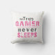 True Gamer Never Sleeps Pink Typography Girl Gamer Pillow. Perfect design for a true girl gamer.