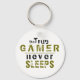 True Gamer Never Sleeps Typography Gamer Keychain. A perfect keychain for a true gamer. The funny typography is green and black. For people who love playing video games and computer games.