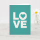 This greeting card keeps things simple and heartfelt, with the word “LOVE” as the main focus. The letters are in white, all caps, and arranged in a neat block with “LO” on top and “VE” underneath. The “O” is replaced by a white heart, which makes the message feel extra warm and direct ❤️. The background is a deep teal color with a faint paper-like texture that adds a gentle, cozy touch. Each letter has a light shadow underneath, giving the design a small bit of depth without making it busy. The text looks like straightforward block lettering, centered on the front, and easy to read at a glance 💌. It’s a great pick for romance, affection, or even a sweet note to a close friend—maybe with a little chocolate on the side 🍫