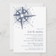 Coastal chic rehearsal dinner invitation features a vintage hand drawn nautical compass illustration, with your rehearsal dinner details in classic navy blue. Perfect for beach, summer, or nautical rehearsals and celebrations, these coastal style invitations reverse to wide blue and white stripes. Includes space for both the ceremony rehearsal and the following dinner or celebration.