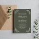 This gorgeously simple yet elegant wedding invitation features a frame of drawn leaves bordering the invitation text. Please contact me if you would like help with customising the text portion.
