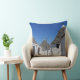 Throw pillow with traditional white plaster trulli houses with stone tiles in conical roofs in a small street in the town Alberobello, Itria Valley in Puglia, Italy.
