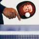 Here's a funny ping pong paddle that will be a real conversation starter! It has an artistic portrait of Donald Trump in a circular red frame border. The curved text above and below the image says "Make PING PONG GREAT again". The image is repeated on both sides.