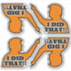 Set of four vinyl stickers featuring an orange Trump inspired silhouette pointing with a superimposed header claiming "I DID THAT!!". Make your political statement by letting this little Trump monster take proper credit.