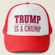 The popular trucker hat printed with the slogan Trump is a Chump for the anti-Trump voter, republican or democrat.