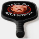 At the centre of this paddle is an artist's portrait of Donald Trump. The portrait is encircled by a red border on a black background, with the white text "Let's Go BRANDON". The back is solid black, with your triple monogram in white at the bottom.