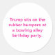 Trump sits on the rubber bumpers at a bowling alley birthday party. Conscious Splash-Art Social-Commentary sticker-design by Jeff Hankamer at Artjunkhaus