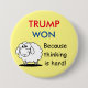 "Trump Won - Because Thinking is Hard!" with sheep 7.5 Cm Round Badge