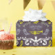 Fun musical pattern of Trumpets and little birds in purple and gold.