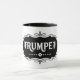 Trumpet in decorative text against a black or white emblem is a unique gift design for brass musicians, teachers and students in jazz band, concert and marching band.
