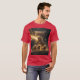 I give wanted to give this a 4 instead of a 5 because these Basic DARK T0shirts run unexpectedly SLIM or Narrow. Which is great if you do not have a potbelly, but I have a paunch. It isn't the shirt's fault that I've got a beer belly. The design and shirt itself is a quality cotton shirt. The color is more of a deep purple, but still a very pretty color. The Basic DARK T-shirts run a bit SLIMMER than the Basic Ts. The neck is a fraction narrower (or seems to be narrower) also. I'm a paunchy middle-aged woman and my neck is 12 inches (31cm) thick and the neckline fell about the same as in the photo of the man, and I had the desire to tug it a bit. So if you're a thick necked man or like loose shirts, be aware these are slimmer shirts. Once I get rid of my lockdown paunch it'll look great. The shirt washed well in cold water with no apparent bleeding. We don't have a dryer, so it hung dry. Did not shrink. Love the colors and the design. The design looks smaller on my shirt than it does on the model on-line. But still, it looks good on the shirt. The printing looks as it does on the model, just the size seems fractionally smaller. Washed garment in cold water, hung dry and design appeared unaffected.
