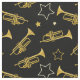 Cool fabric patterned with brass trumpets and stars. Perfect for trumpet players, and music lovers alike.