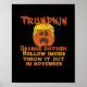 A “Trumpkin Inside Throw Out November” classic design. Political, satirical, and festive for election season.