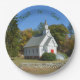 This paper plate features a quaint country church in Cornwall Connecticut with the message to trust in God.