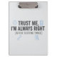 Trust Me I’m Always Right Funny Quality Engineer Clipboard