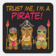 Trust Me, I'm a Pirate, Funny Tiki Pirates, Black Square Sticker