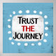 "Trust The Journey" is a cute inspirational or motivational quote with a white accent shape surrounded by white textured whimsical dots.