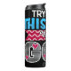 This motivational design encourages "TRY AGAIN THIS TIME With GOD." "TRY AGAIN" is in a distressed white, and "THIS TIME" is a bold blue. "With" flows in a script over a pink wavy banner, and "GOD" is prominent with a white plaid pattern and red hearts, emphasising divine partnership in new attempts.