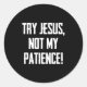 Try Jesus Not My Patience Funny Christian Gift Fai Classic Round Sticker