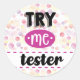 Try me tester label stickers are perfect for labelling products to invite potential customer to try. This product is fully customisable and the design can be transferred on to any other product. Add your business logo to these designs for further customisation. More coordinating products available!