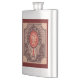 The product is a good size and came exactly as it was pictured. The lid is not attached to the flask, which could be dangerous on drunken nights... The print came out surprisingly well and looks very sharp. Would definitely recommend.
