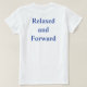 T-shirt with 'Relaxed and Forward' on the back and a small logo on the front. Relaxed and Forward is a lifestyle! Ride for the brand.