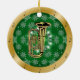 Tuba Christmas Ornament Silver & Green with Musical Notes on Gold Background