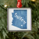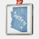 Tucson Arizona is a paradise of outdoor adventure. This elegant design is a map of Arizona with a blue wood grain texture and beautiful cursive text.