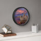 The size of the clock is dramatic and the abstract alcohol ink design is soothing and intricate at the same time. I chose the black frame that adds pop to the blue and gold design. The gold printing would be better in a slightly darker or larger font. I love it and I’m looking for just the right place in ny new apartment. I would recommend this clock for a personal gift or a present. I feel that the quality is excellent for the money! I’m a bit of a clock nut so I’m pretty particular about my purchases. The clock is larger in diameter than many if the clocks I have, so it stands out very well. I think a slightly darker printing color and a moderately larger size would best suit a professional decor or add more impact in a work place item.