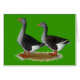 Tufted geese sport little pom poms on top of their heads. These "weeder" Toulouse do not have the heavy dewlaps of exhibition type Toulouse fowl.