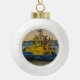 Tugboat sailing at river, montevideo, uruguay ceramic ball christmas ornament