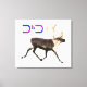 An image of a bull caribou, or reindeer, with the word "tuktu" (caribou) spelled out in the Inuit (Eskimo) alphabet. Choose your own background colour. The caribou (Rangifer tarandus), known as the reindeer outside of North America, is a deer of the Arctic and Subarctic. While overall widespread and numerous, some subspecies are rare and one has gone extinct. The Inuit word tuktu means - deer that never stops moving. Caribou are always on the move, going north to calve, heading for the winter grounds, and south in the summer. Caribou considerably in colour and size. Uniquely among deer, both genders grow antlers, though these are larger in the males and there are a few populations where females lack them completely. Caribou hunting and herding of semi-domesticated reindeer (for meat, hides, antlers, milk and transportation) are important to several Arctic and Subarctic people. Even far outside its range, the caribou/reindeer is well known due to the myth, probably originating in early 19th century America, in which Santa Claus's sleigh is pulled by flying reindeer, a popular secular element of Christmas. In actual Lapland, reindeer would pull a pulk. Distribution and habitat The caribou/reindeer is a widespread and numerous species in the northern Holarctic, being present in both tundra and taiga (boreal forest). It was originally was found in Scandinavia, eastern Europe, Russia, Mongolia, and northern China north of the 50th latitude. In North America, it was found in Canada, Alaska (USA), and the northern conterminous USA from Washington to Maine. In the 19th century, it was apparently still present in southern Idaho. It also occurred naturally on Sakhalin, Greenland, and probably even in historical times in Ireland. During the late Pleistocene era, reindeer were found as far south as Nevada and Tennessee in North America and Spain in Europe.Today, then species has disappeared from many areas within this large historical range, especially from the southern parts, where it vanished almost everywhere. Large populations are still found in Norway, the Markku region of Finland, Sweden, Siberia, Greenland, Alaska, and Canada. Domesticated reindeer are mostly found in northern Fennoscandia and Russia, with a herd of approximately 150-170 reindeer living around the Cairngorms region in Scotland. The last remaining wild tundra reindeer in Europe are found in portions of southern Norway. A few reindeer from Norway were introduced to the South Atlantic island of South Georgia in the beginning of the 20th century. Today, there are two distinct herds still thriving there, permanently separated by glaciers. Their total numbers are no more than a few thousand. The flag and the coat of arms of the territory contain an image of a reindeer. Around 4000 reindeer have been introduced into the French sub-Antarctic archipelago of Kerguelen Islands. East Iceland has a small herd of about 2500–3000 animals. Caribou and reindeer numbers have fluctuated historically, but many herds are in decline across their range. This global decline is linked to climate change for northern, migratory caribou and reindeer herds and industrial disturbance of caribou habitat for sedentary, non-migratory herds. Fur Fur colour varies considerably, both individually, and depending on season and subspecies. Northern populations, which usually are relatively small, are whiter, while southern populations, which typically are relatively large, are darker. This can be seen well in North America, where the northermost subspecies, the Peary Caribou, is the whitest and smallest subspecies of the continent, while the southermost subspecies, the Woodland Caribou, is the darkest and largest. The coat has two layers of fur, a dense woolly undercoat and longer-haired overcoat consisting of hollow, air-filled hairs. Antlers Reindeer antlers grow again each year under a layer of fur called velvet. In most populations both sexes grow antlers, which (in the Scandinavian variety) for old males fall off in December, for young males in the early spring, and for females in the summer. The antlers typically have two separate groups of points, a lower and upper. Domesticated reindeer are shorter-legged and heavier than their wild counterparts. There is considerable subspecific variation in the size of the antlers (e.g., rather small and spindly in the northernmost subspecies), but in some subspecies the bull reindeer's antlers are the second largest of any extant deer, after the moose, and can range up to 39 inches (100 cm) in width and 53 inches (135 cm) in beam length. They have the largest antlers relative to body size among deer.Antler size plays a significant role in establishing group hierarchy. Nose and hooves Reindeer have specialised noses featuring nasal turbinate bones that dramatically increase the surface area within the nostrils. Incoming cold air is warmed by the animal's body heat before entering the lungs, and water is condensed from the expired air and captured before the deer's breath is exhaled, used to moisten dry incoming air and possibly absorbed into the blood through the mucous membranes. Reindeer hooves adapt to the season: in the summer, when the tundra is soft and wet, the footpads become sponge-like and provide extra traction. In the winter, the pads shrink and tighten, exposing the rim of the hoof, which cuts into the ice and crusted snow to keep it from slipping. This also enables them to dig down (an activity known as "cratering") through the snow to their favourite food, a lichen known as reindeer moss. The knees of many species of reindeer are adapted to produce a clicking sound as they walk. Diet Reindeer are ruminants, having a four-chambered stomach. They rely primarily on lichens in winter, especially reindeer moss. However, they also eat the leaves of willows and birches, as well as sedges and grasses. There is some evidence to suggest that on occasion, they will also feed on lemmings, arctic char, and bird eggs.