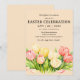This beautiful Easter invitation features a lush watercolor border of soft pink and creamy yellow tulips blooming across the bottom in full spring glory. The warm peach background and elegant typography give this card a polished, sophisticated feel perfect for an Easter celebration or egg hunt gathering. Easily customize all event details including date, time, address, and RSVP information to make it perfectly yours. Send this stunning invitation to your guests and let the springtime fun begin.