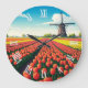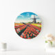 Tulip Fields Windmill Holland Netherlands Large Clock