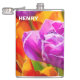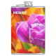 Colourful violet, purple, pink tulips on a flowerbed. Virtually all the rainbow colours present. Bright and positive floral scene. Flask for him. Customisable. You can change or delete the template name Henry.