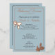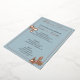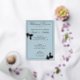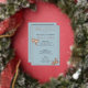 This is a 5' x 7" rehearsal dinner invitation, shown in pastel blue, with rose gold foil accents. This is real foil trim, available in gold, silver, and rose gold. The foil accents include the rehearsal dinner banner, bride and groom's name, a whimsical heart a tulip/flowers design, and a foil outline on the front. the reverse includes the bride and groom's name and heart artwork.