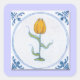 Vintage blue and white delft tile art of yellow tulips and simple floral elements in blue with a hand painted look.
