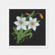 Beautiful bouquet of brightly colourful spring flowers, yellow tulips and white daffodils on black background.