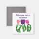 Pink and purple tulips with crisp green foliage. A fun message... the message can be changed if so desired.