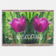 Beautiful tulips blossoms , floral photo - Welcome text.