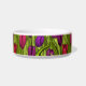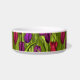 This is a heavy, durable bowl decorated with Tibbies of many colors, the perfect size for hungry/thirsty Tibs. The design is interesting and printing clear.
