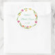 Editable Tulips and butterflies white Bridal Shower round sticker. Design features a pretty wreath of pink, yellow and orange Tulips on a white background. A pink and yellow butterfly frolic around the tulips, enhancing the joyful aesthetic with a whimsical touch! Use as an envelope seal on your Bridal Shower invitations and floral themed invites! Personalise the text and change the font style and colour to suit. Reposition and remove the text using the Design Tool if required.