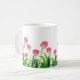 This coffee mug is shown with a lovely pink tulips print.