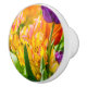 Colourful tulips on a flowerbed. All the rainbow colours present. Bright and positive floral scene. Macro photography.